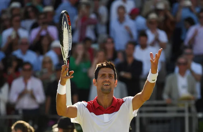 Novak Djokovic of Serbia celebrates after beating France's Adrian Mannarino in their quarter final match at Queen's Club in London on Friday. Photo: Neil Hall/EPA Novak Djokovic of Serbia celebrates after beating France's Adrian Mannarino in their quarter final match at Queen's Club in London on Friday. Photo: Neil Hall/EPA
