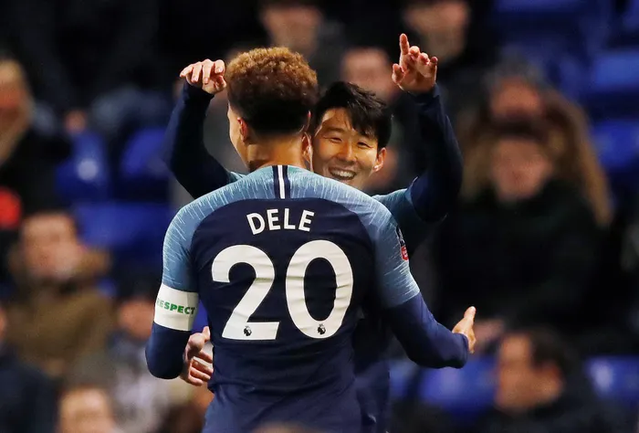 Tottenham's Son Heung-min celebrates scoring their fourth goal with Dele Alli. Photo: Reuters/Carl Recine Tottenham's Son Heung-min celebrates scoring their fourth goal with Dele Alli. Photo: Reuters/Carl Recine