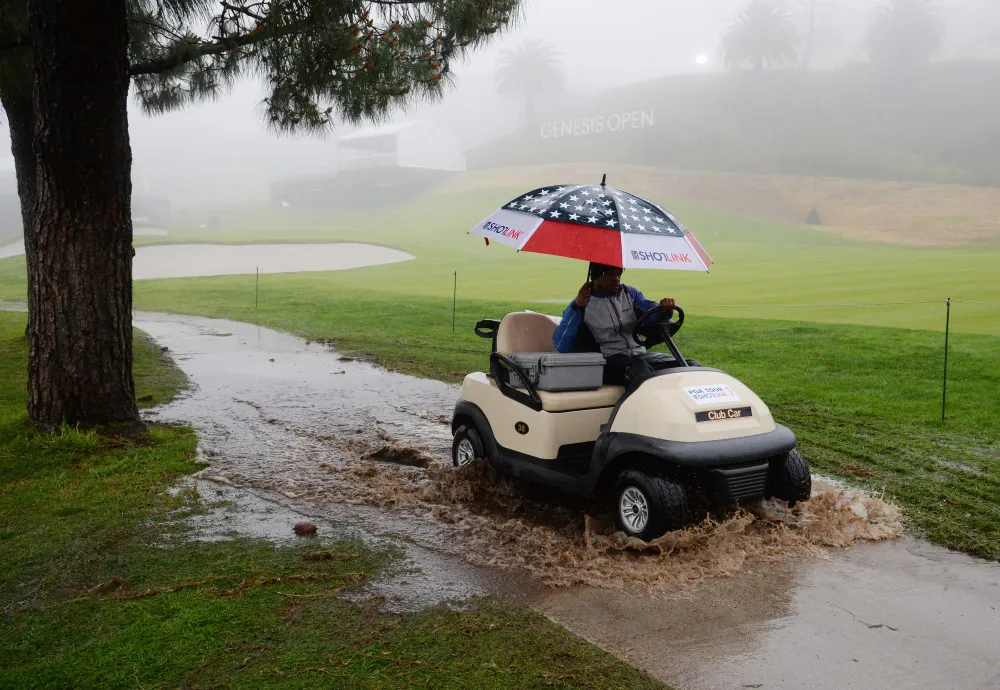 LOS ANGELES – Three-time major-winner Jordan Spieth and South Korean Kang Sung topped the leaderboard Thursday when darkness halted play in the weather-hit Genesis Open, where tournament host Tiger Woods never even got to tee off.