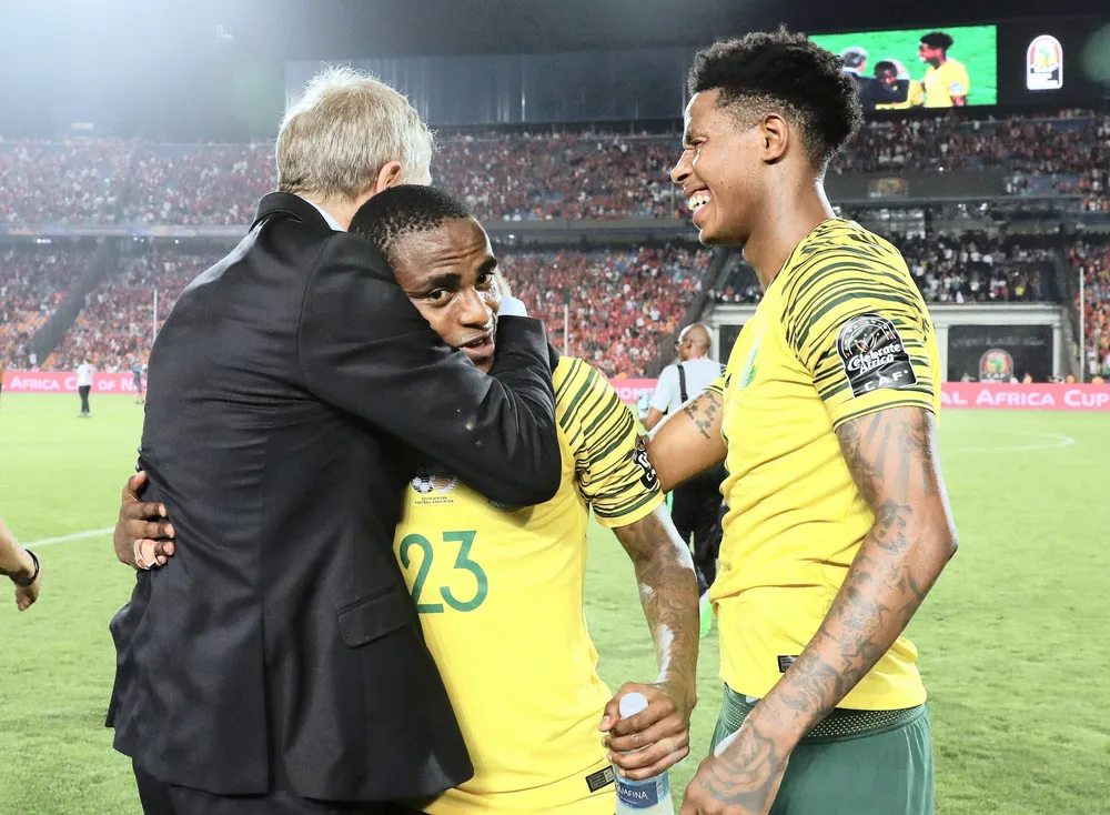 Bafana coach Stuart Baxter embraces Thembinkosi Lorch as Bongani Zungu looks on at the Cairo International Stadium on Saturday. Photo: Gavin Barker/BackpagePix Bafana coach Stuart Baxter embraces Thembinkosi Lorch as Bongani Zungu looks on at the Cairo International Stadium on Saturday. Photo: Gavin Barker/BackpagePix