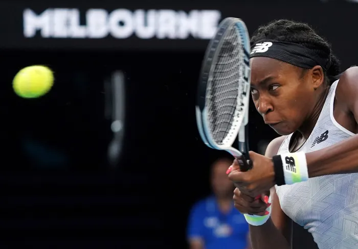 Coco Gauff of the U.S. makes a backhand return to Japan's Naomi Osaka during their third round singles match at the Australian Open on Friday. Photo: AP Photo/Lee Jin-man Coco Gauff of the U.S. makes a backhand return to Japan's Naomi Osaka during their third round singles match at the Australian Open on Friday. Photo: AP Photo/Lee Jin-man