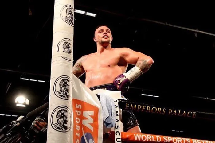 South Africa’s latest heavyweight sensation, Kevin Lerena, recorded a fourth-round knockout win over Romanian Bogdan Dinu at Emperors Palace in Johannesburg on Saturday night. Picture: twitter.com/WBABoxing