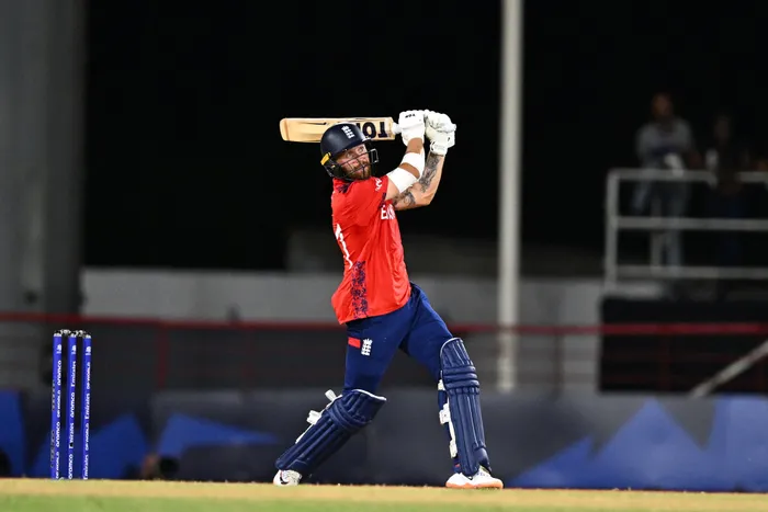 England's Phil Salt looks on after hitting a six during the ICC men's Twenty20 World Cup 2024 Super Eight cricket match between England and the West Indies at Daren Sammy National Cricket Stadium in Gros Islet, Saint Lucia Phil Salt (pictured) smashed seven fours and five sixes during a swashbuckling innings at the Daren Sammy National Stadium in St. Lucia while Jonny Bairstow hit an unbeaten 48 as England finished on 181-2 off 17.3 overs. Picture: Chandan Khanna/AFP