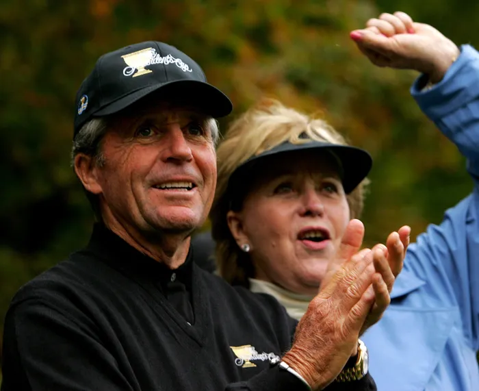 FILE - Gary Player International team captain and wife Vivienne applaud during the round 1 foursome matches of The Presidents Cup on September 27, 2007. Photo: S.Greenwood/Getty Images via AFP