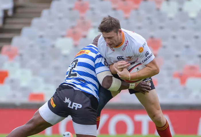 Reinhardt Fortuin of Cheetahs is tackled by Western Province hooker Bongi Mbonambi during their Currie Cup clash at the Free State Stadium in Bloemfontein on Saturday. Photo: Frikkie Kapp/Gallo Images via BackpagePix