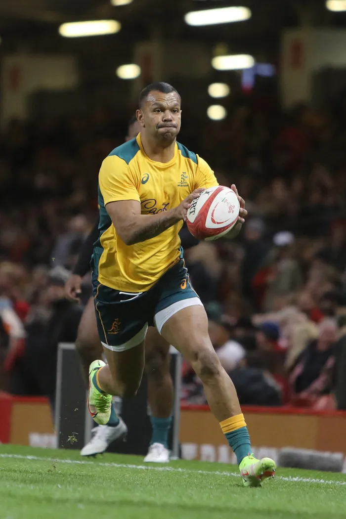 Australia's full-back Kurtley Beale warms up ahead of the Autumn International friendly rugby union match between Wales and Australia at the Principality Stadium in Cardiff, south Wales, on November 20, 2021. (Photo by Geoff Caddick / AFP)