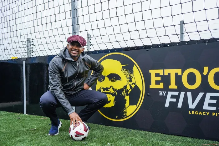 Former Barcelona and Cameroon football superstar Samuel Eto'o spent a few days in the country to assist with identifying suitable venues for five-a-side football. Picture: Supplied