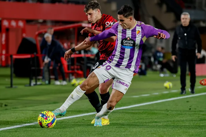 Mallorca's Uruguayan defender Giovanni Gonzalez (left) vies for the ball with Valladolid's Brazilian defender Lucas Rosa (right) Mallorca's Uruguayan defender Giovanni Gonzalez (left) vies for the ball with Valladolid's Brazilian defender Lucas Rosa (right) during the Spanish LaLiga soccer match at Son Moix stadium in Palma de Mallorca, Balearic Islands, Spain, 07 January 2023. Picture: Cati Cladera/EPA