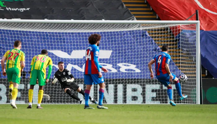 The Palace captain found the bottom right corner from the spot in the 37th minute after West Brom defender Darnell Furlong was booked for a handball inside the penalty area following a VAR check.