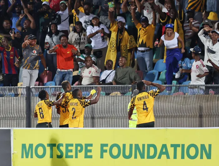 Glody Lilepo of Kaizer Chiefs celebrates the winning goal with teammates during as they beat Marumo Gallants 1-0 in the the Betway Premiership match at the Dr. Petrus Molemela Stadium, Bloemfontein on Wednesday.