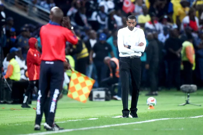 Orlando Pirates head coach Abdeslam Ouaddou, gestures during the Betway Premiership League against Mamelodi Sundowns at the FNB stadium, Soweto.
