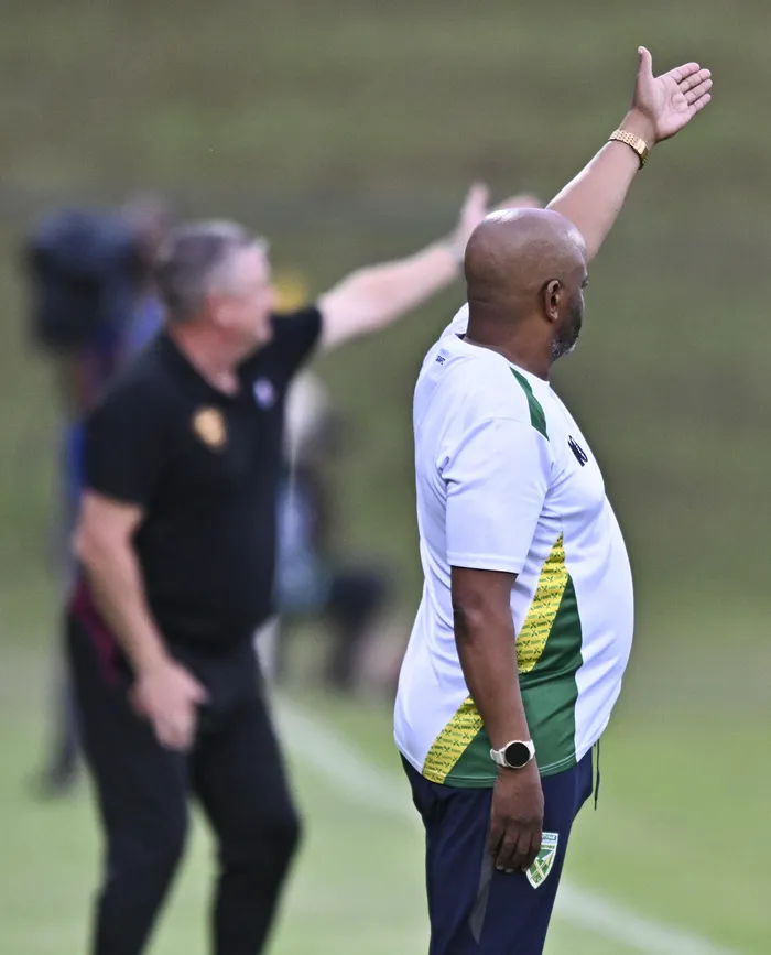 Gavin Hunt wasn't holding back after Stellenbosch FC's narrow Nedbank Cup exit, but Manqoba Mngqithi credits Golden Arrows' "extra legs" for securing the win. Photo: Backpagepix