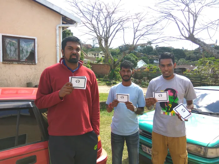 Shallcross Youth Movement members Theesan Vedan, Kershin Pillay and Previn Vedan holding the motor vehicle accident emergency card. Shallcross Youth Movement members Theesan Vedan, Kershin Pillay and Previn Vedan holding the motor vehicle accident emergency card.