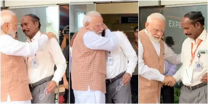Indian Prime Minister, Narendra Modi, consoles Kailasavadivoo Sivan. Picture: Facebook Indian Prime Minister, Narendra Modi, consoles Kailasavadivoo Sivan. Picture: Facebook