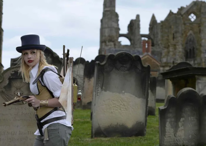A woman poses for photographs during the Goth festival in Whitby. A woman poses for photographs during the Goth festival in Whitby.