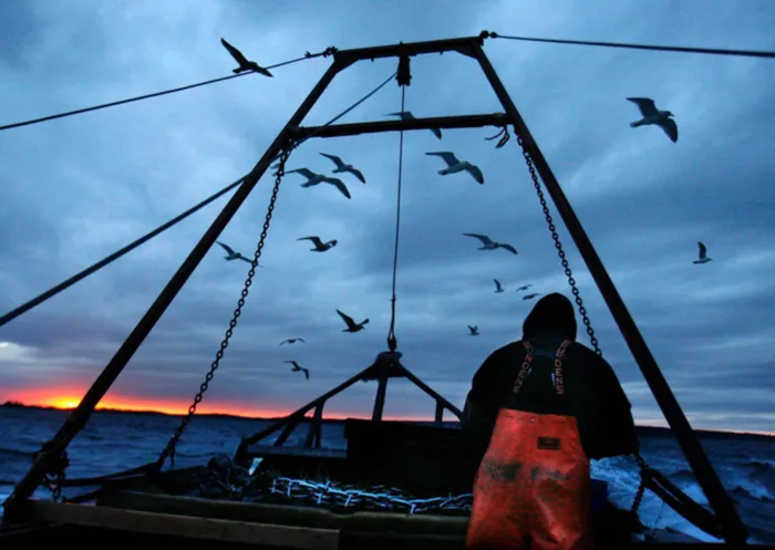 We sit, legs straddling the boat's sides, and get to work. Compared with oysters, scallops are a cinch to shuck. But I soon learn there is a trick to doing it right.