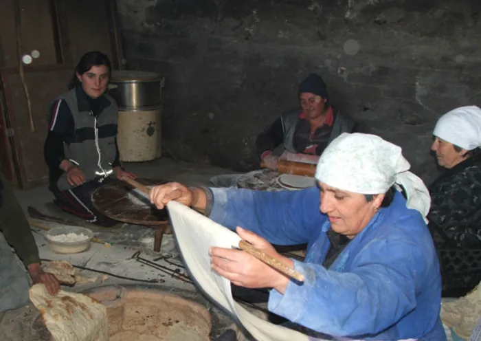 One woman then flings this dough on to the clay walls of a pit filled with coals. Within minutes, the lavash is ready.