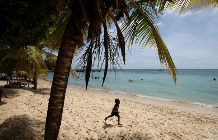 A child runs along the beach at Pigeon Point, Tobago. A child runs along the beach at Pigeon Point, Tobago.