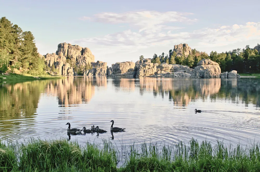 Tourists can stay in different log cabins, swim in a series of crystal-clear lakes, paddle a canoe, hike the scenic terrain and take a drive along the spectacular Needles Highway (which, incidentally, was once dubbed the Needless Highway by locals who felt it was a waste of money).