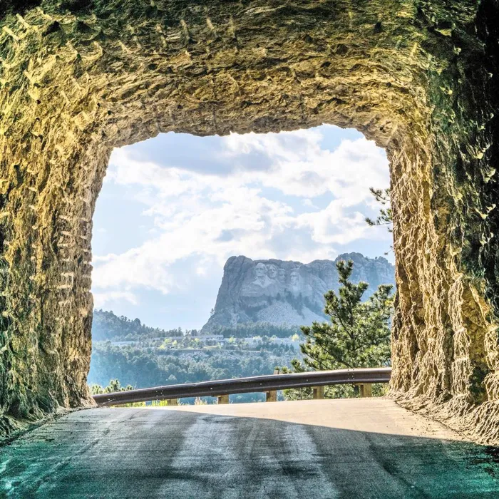In Mount Rushmore Park, the pig-tail bridges and tunnels are thrilling. These curve back around themselves as you drive ever upwards - just like following the tight windings of a pig’s tail.