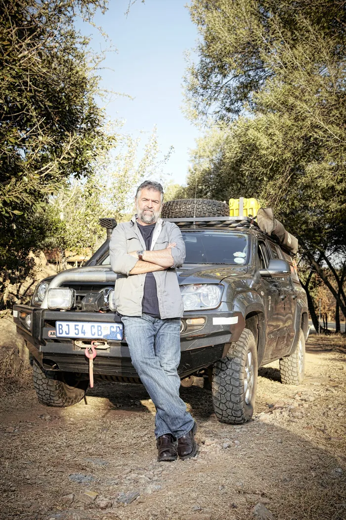 His trademark silver-grey beard, dark sunglasses and booming but warm voice make him one of the recognisable faces on the small screen. Johan Badenhorst is an expedition leader and narrator of Voetspore, an adventure series.