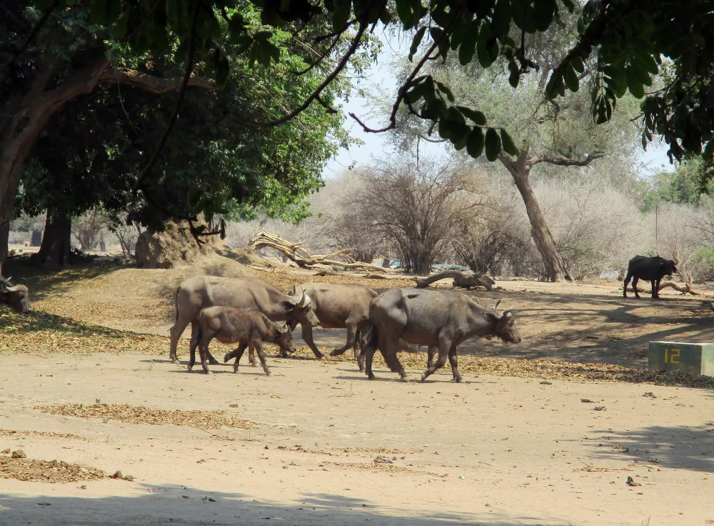 Sadly, Mana was in the grips of a devastating drought. Grass was almost non-existent, though the trees were flourishing. The buffalo were taking great strain, and we sometimes saw the carcass of a hapless bovine, which provided the vultures with a veritable feast to squabble over. Fortunately, Animal Welfare Zimbabwe was sending in truckloads of feed, and buffalo filed past in their hundreds, heads hanging, clearly weary, as they plodded towards this lifeline.
