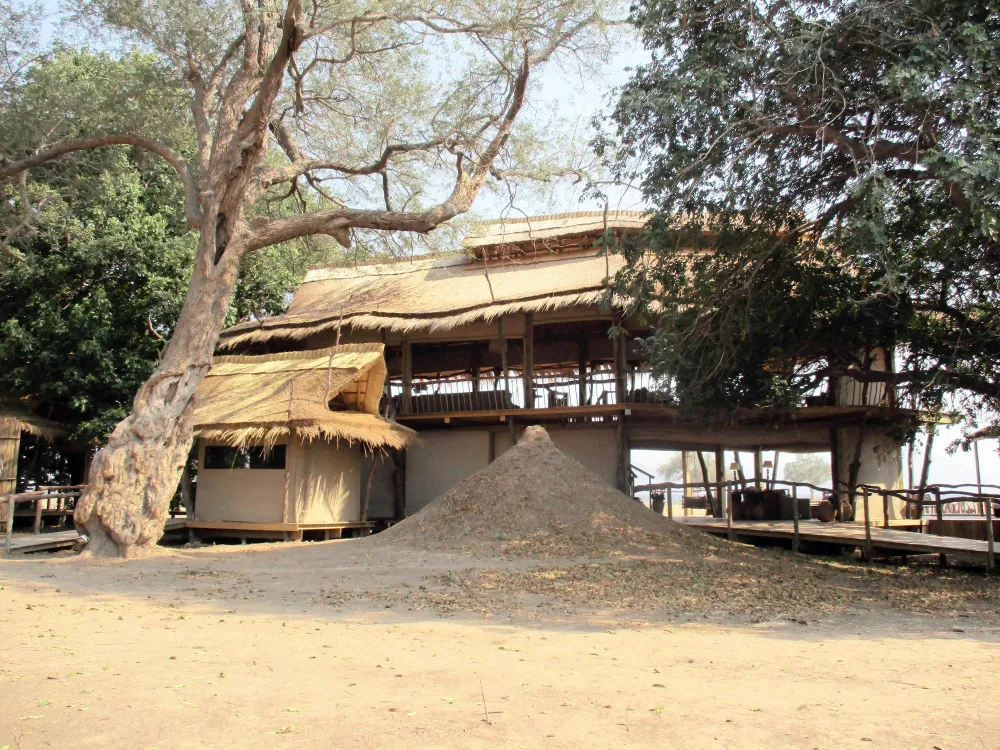 Nyamepi is scenic. Set under iconic spreading trees, it looks across the wide river to its Zambian side, where a park on that bank boasts jagged hills. Fishermen in their canoes were also active on that distant shore, especially at night.