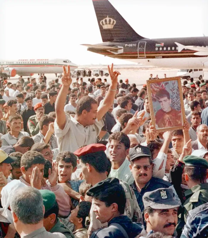 File photo: A Palestinian man celebrates with others the opening of the Gaza International airport in Dahanieh, 1998. Picture: AP
