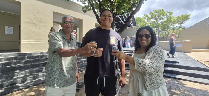 For !Khúboab Lawrence, the anxious wait to collect his results was eased by an SMS he received earlier in the day confirming that he had passed. “I am just so happy, especially because I can see the improvements I’ve made since Grade 11,” he said. Lawrence plans to study law, with a focus on human rights. He was joined at the school by his mother, Lesle Jansen-Lawrence, and his grandfather, John Jansen, who were there to support him as he opened his results.