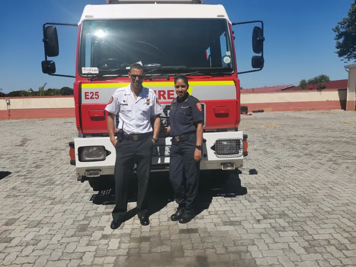 Jermaine Carelse, spokesperson for the City Fire and Rescue Service with firefighter Cindy Theron from Wynberg Fire Station. I Shanice Naidoo